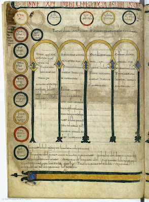 The above figure is the third page from an unnamed manuscript in the Pierpont Morgan Library (New York) M.644 (dated 940-945 AD). This one shows Noah and his non-Semite descendants.