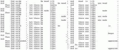 Canterbury Tales, but only after deleting 14 of their 58 manuscripts, "as they were likely to have been copied from more than one exemplar, either by deliberate conflation of readings or by changing the exemplar during the course of copying." A similar explanation is likely to apply for some of the texts for Genesis 1:3, although many of them were translated directly from the original Hebrew rather than from later translations (eg. the Latin "Vulgate").