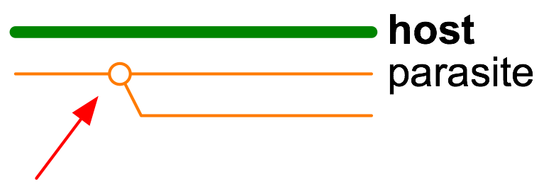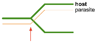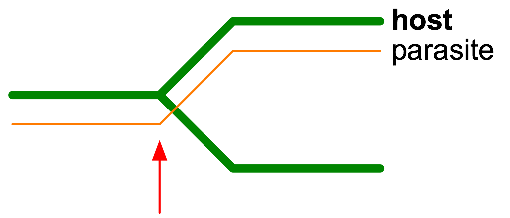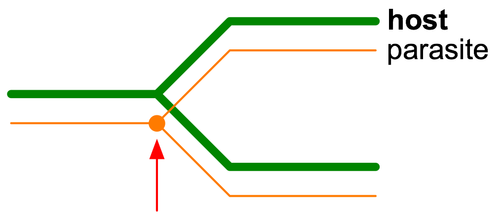 | duplication : where the parasite bifurcates without a corresponding host bifurcation, such as for a gene duplication; |